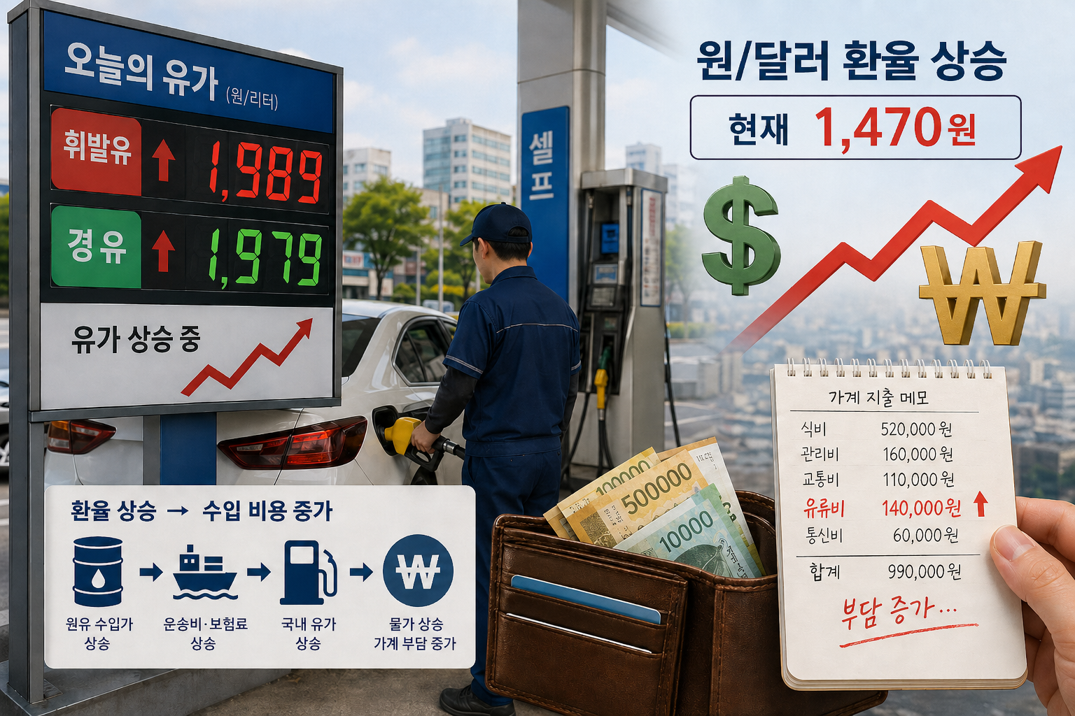 국제유가가 그대로여도 환율이 오르면 원화 기준 수입 부담이 커질 수 있어요.